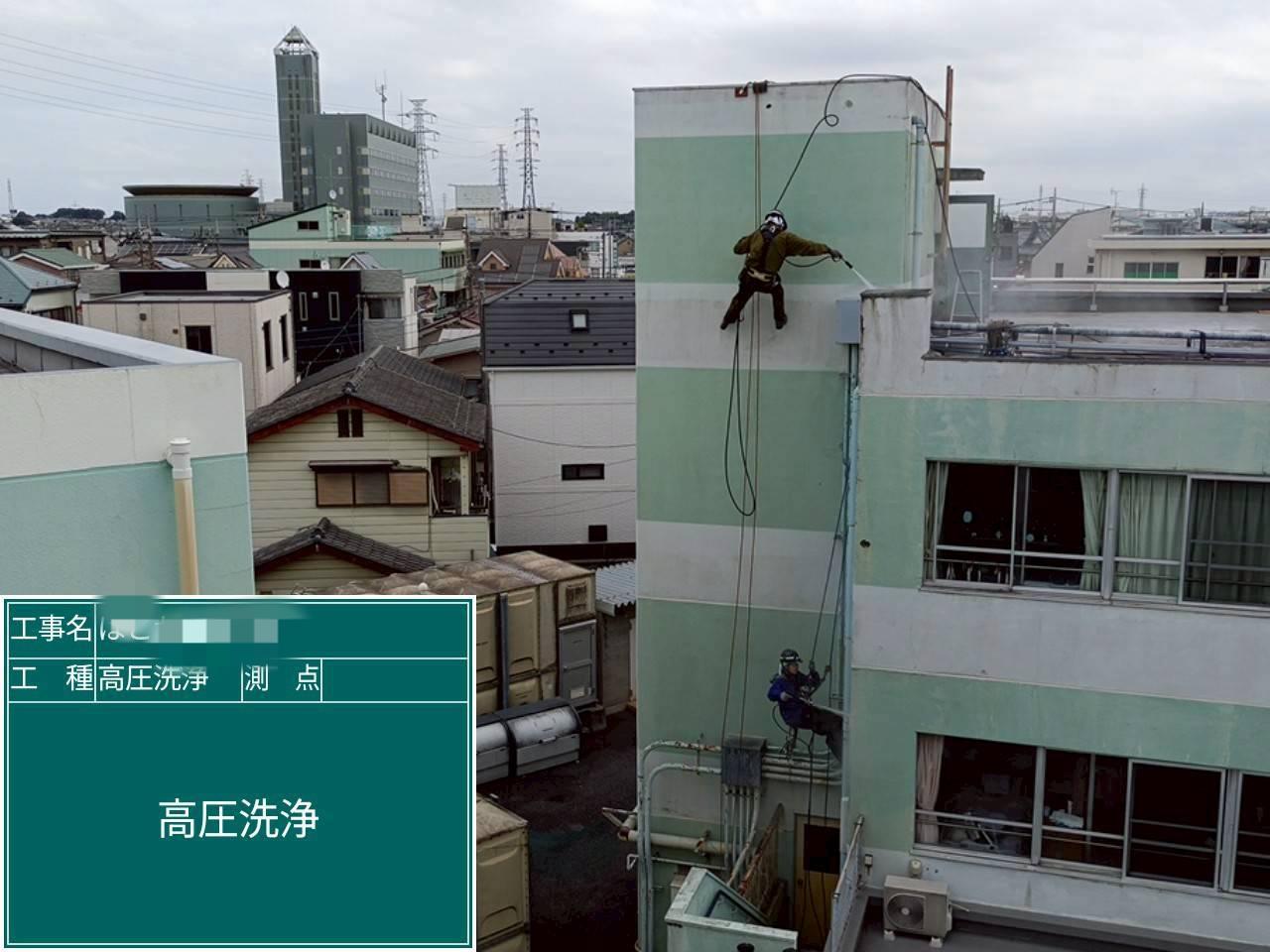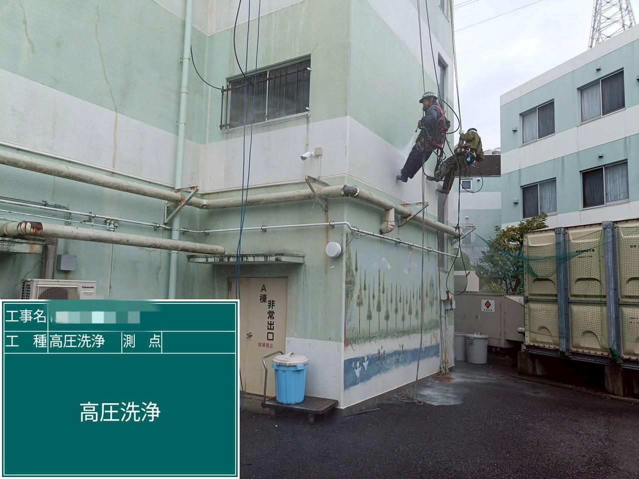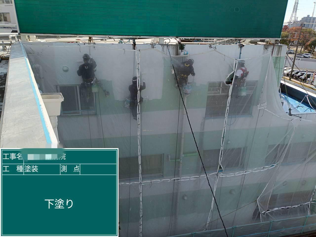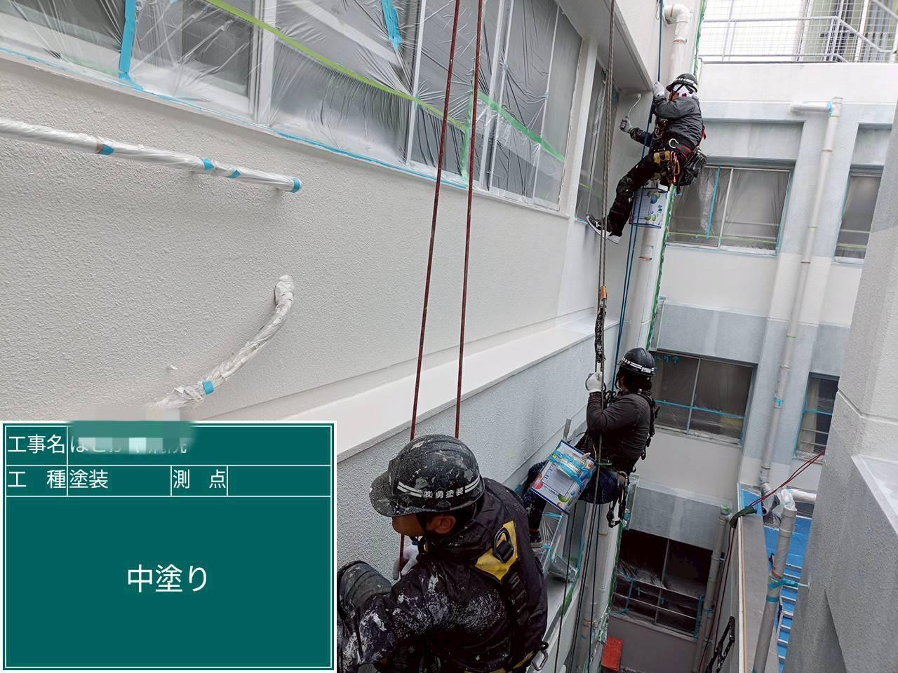 埼玉県川口市 某病院 外壁塗装工事 無足場 ロープアクセ ス 大規模改修工事